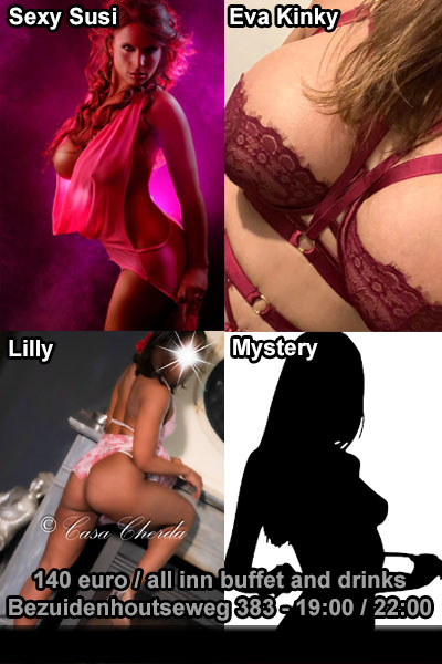 | Sunday 15 February 2026 19:00 till 22:00 | Casa Cherda | VipGangbang met Sexy Susi, Eva Kinky, Lilly en Mistery | VipGangbang.nl | |